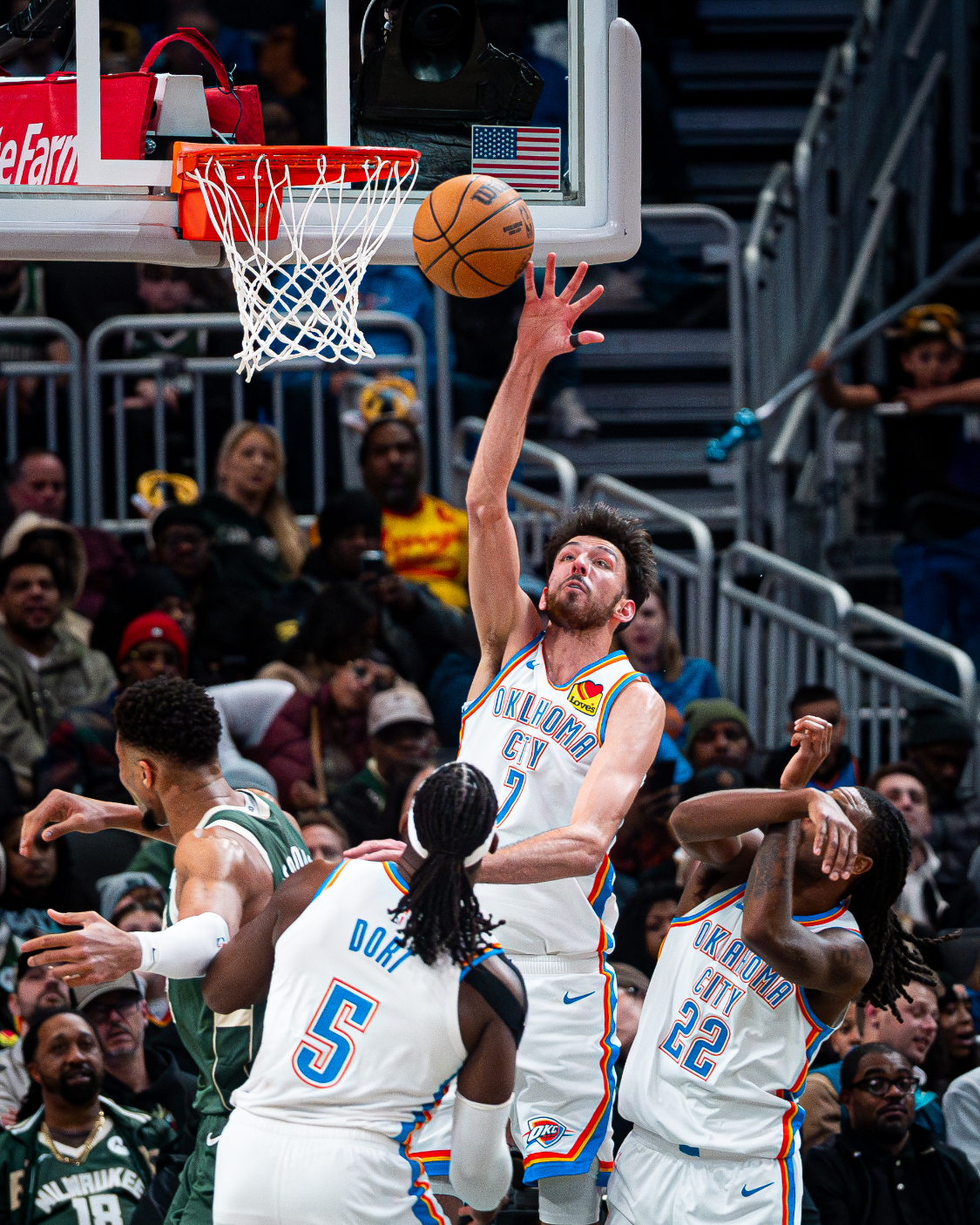 雄鹿队在最后一节开始后不久连追5分,多尔特和亚历山大迅速还击5分稳住局势。雄鹿队暂停后字母哥连续两次突破扣篮,格林也命中三分,但亚历山大挺身而出回应两球,雷霆队继续保持领先。波蒂斯投中三分,亚历山大突破得手,第四节还有4分55秒时雷霆队以113-95领先。雄鹿队暂停后仍没有放弃,罗林斯三分中的率队追回5分,K-威廉姆斯突破得手,雷霆队仍有15分领先。雄鹿队这时换下主力缴械,雷霆队也派上替补,最终他们以122-102获胜。